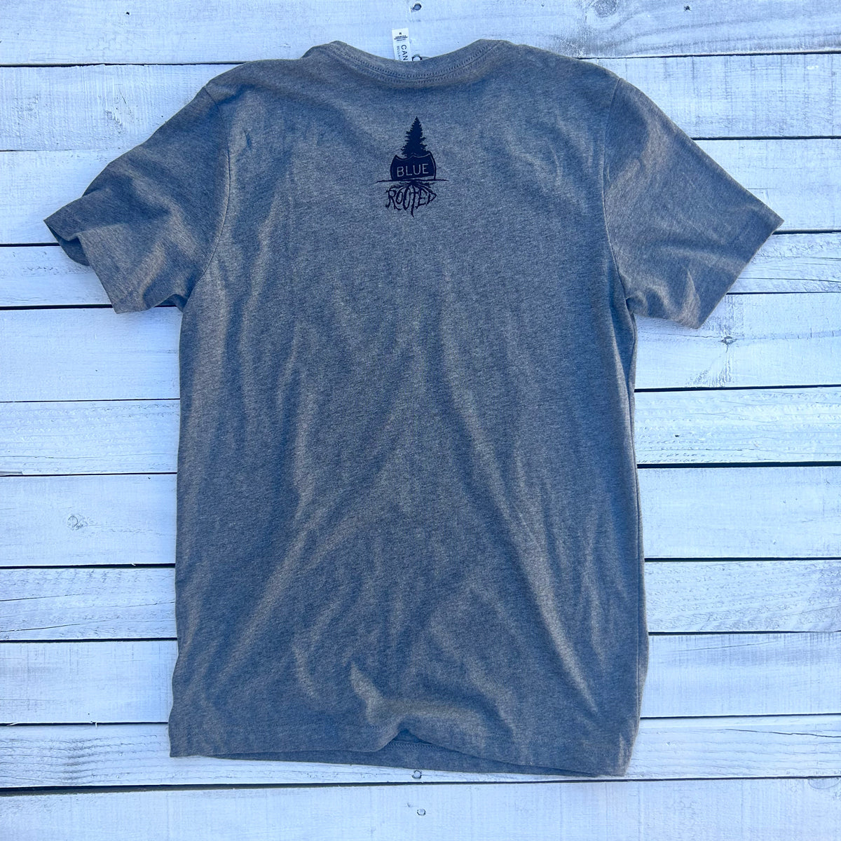 Lord Vader would be so proud seeing you in a super-soft, super-comfy DELCO T! Our OG DELCO State logo in black and white on a super-soft deep heather grey T with a BlueRooted logo on the back.
