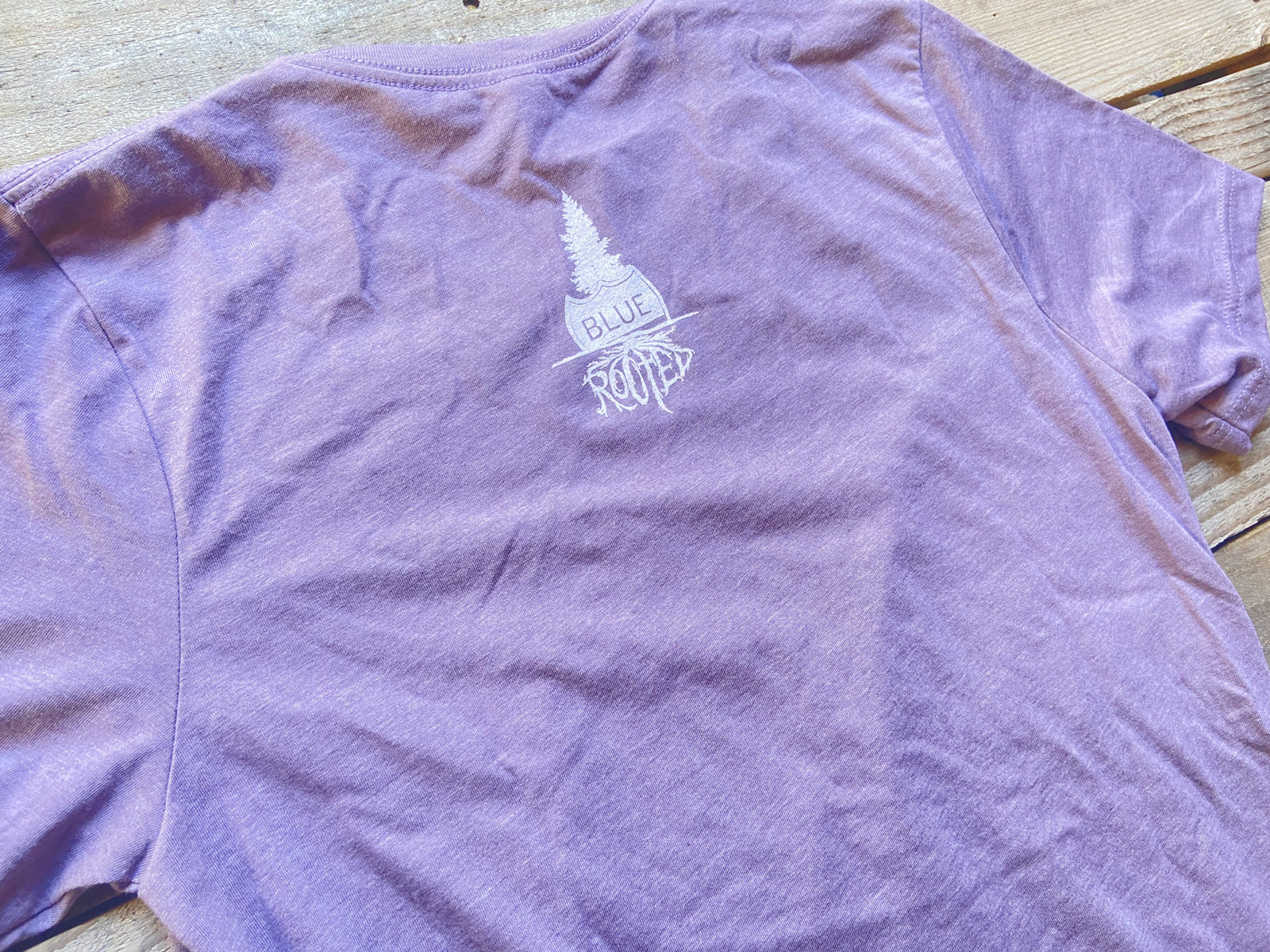 Soft style T with Blue Rooted Original "It's Jimmies Not Sprinkles" Illustration printed on the front in many different flavors. And, always the Blue Rooted logo is on the back near the collar. Try a spoonful of all the flavors!